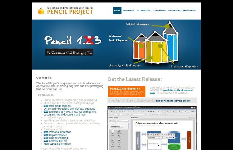 | Um GUI Prototypen oder auch teilweise Diagramme zu erstellen, ist das Pencil Project recht praktisch. Wird als Firefox Erweiterung (Version 1.3.5 läuft in Firefox 15 ohne Probleme) installiert. Das Ganze kann man dann als HTML, PNG, OpenOffice, Word oder PDF exportieren. |
