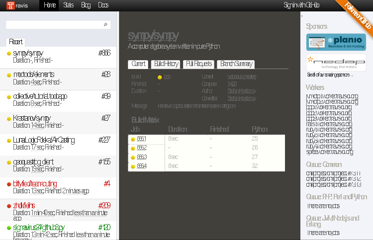 | Continuous Integration für Open Source Projekte bietet Travis CI an. Das Ganze ist mit Github verbunden und man kann Projekte direkt von dort kompilieren lassen. |