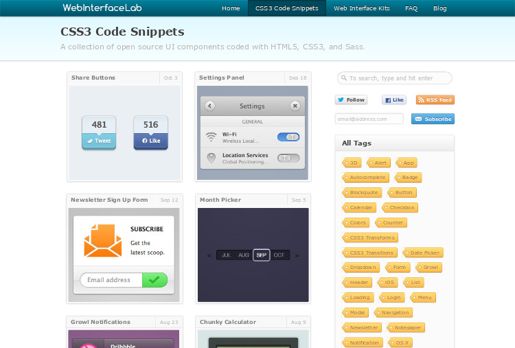 | Eine recht hübsche Kollektion von OpenSource UI Komponenten die mit HTML5, CSS3 und Sass erstellt wurden. |
