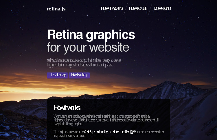 | Diese kleine JavaScript Lib stellt Funktionen zur Verfügung, die prüfen, ob ein User mit einem Retina-Display z.B. vom neuen MacBook Pro surft und liefert entsprechend hochauflösende Bilder aus. |